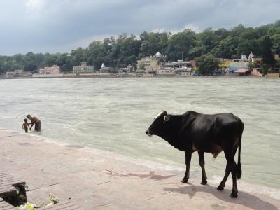 Kuh am Ganges in Rishikesh