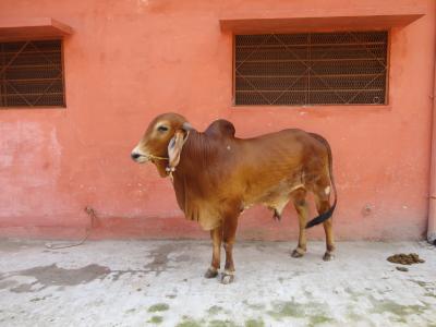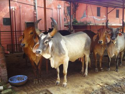 Es gibt auch wenige domestizierte Kühe, wie hier in einem Ashram in Rishikesh: