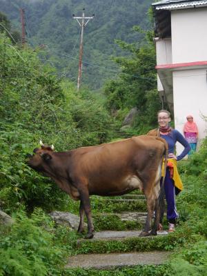 Kuh in Dharamkoth auf dem Weg zum Wasserfall