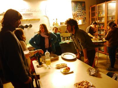 Einmal die Woche treffen sich alle Personen, die im Can Fugaroles Projekte haben, zu einem gemeinsamen Abendessen. Es gibt dann ein bis zwei Köche, die ein leckers Mal für circa 40 Personen kochen und auf einer langen Tischreihe werden dann von allen mitgebrachtes Bier und Wein mitgebracht. Es spielen noch Musiker und es ist wirklich ein sehr schöner Abend!