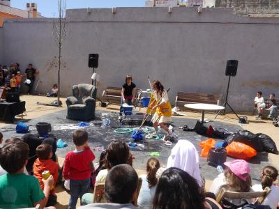 in Mataró gleich bei einem Clownsspekatakel mit viel Wasser und Seife